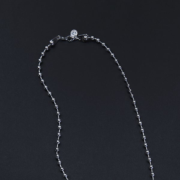 シルバーカラーの7mmサイズのボールチェーンネックレスが登場しました!ステンレスなので軽量で、汚れに強く変色の心配がありません。ロングネックレスとして存在感がありながらも、首への負担が少ない為、デイリーユースにもぴったりです。単体としても楽しんでクールな魅力がグッとアップし、特別な日のお出かけにも最適です。日常使いからパーティーシーンまで、幅広くお楽しみいただけます!