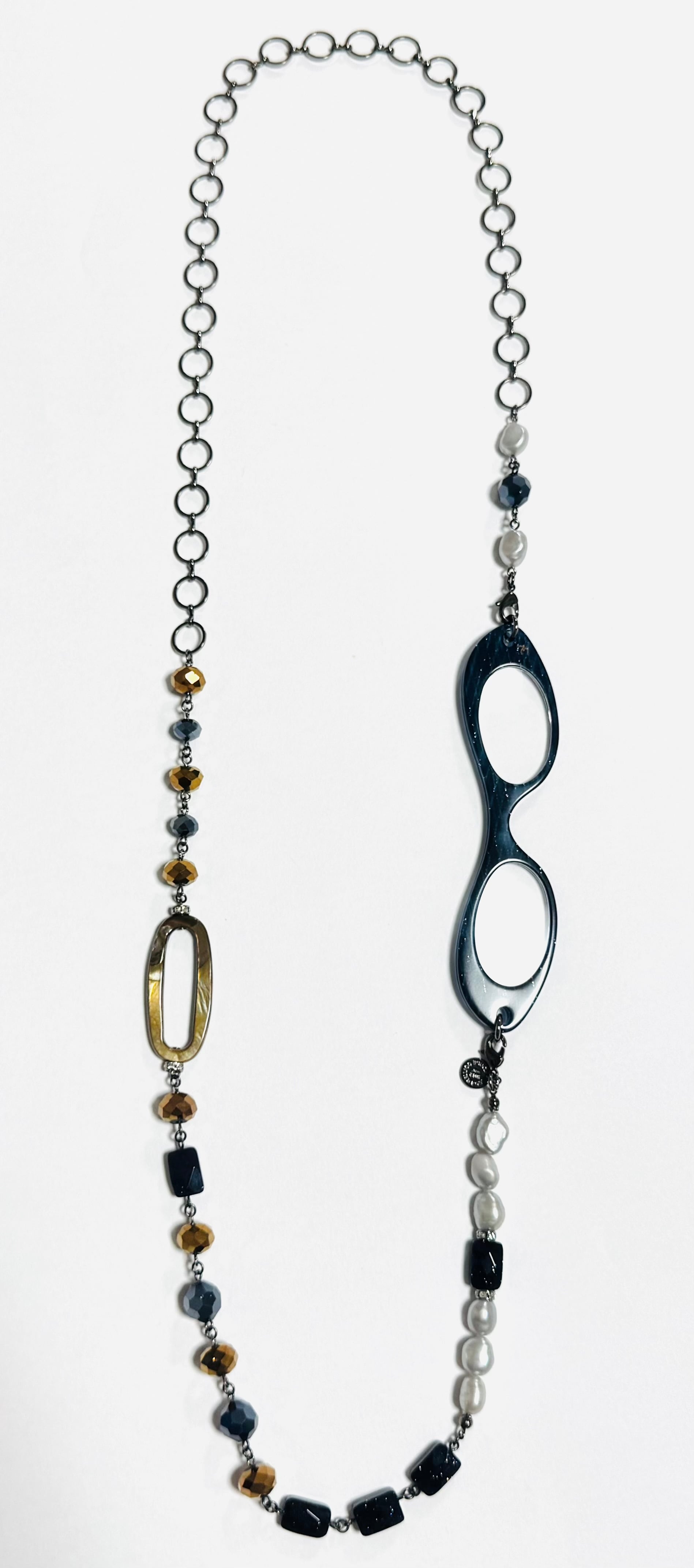 •ネックレス:淡水パールグレー・シェル・ロンデル(チェコ)・ガラスビーズ・ステンレスチェーン