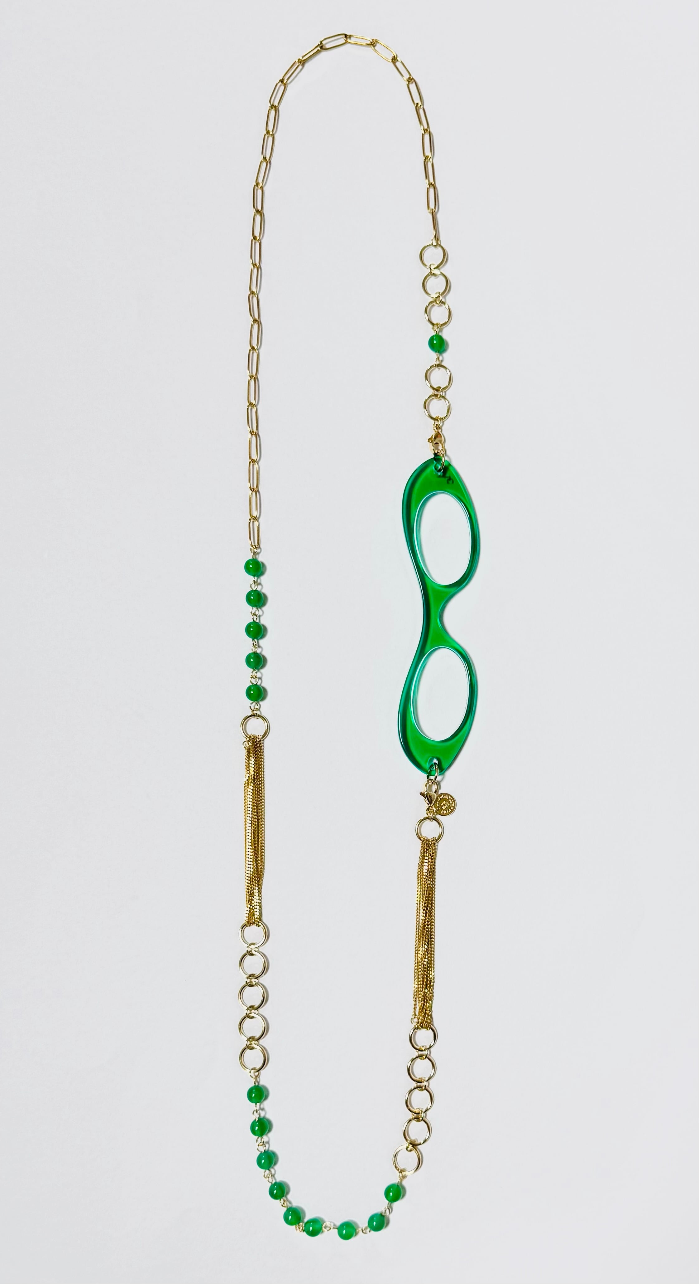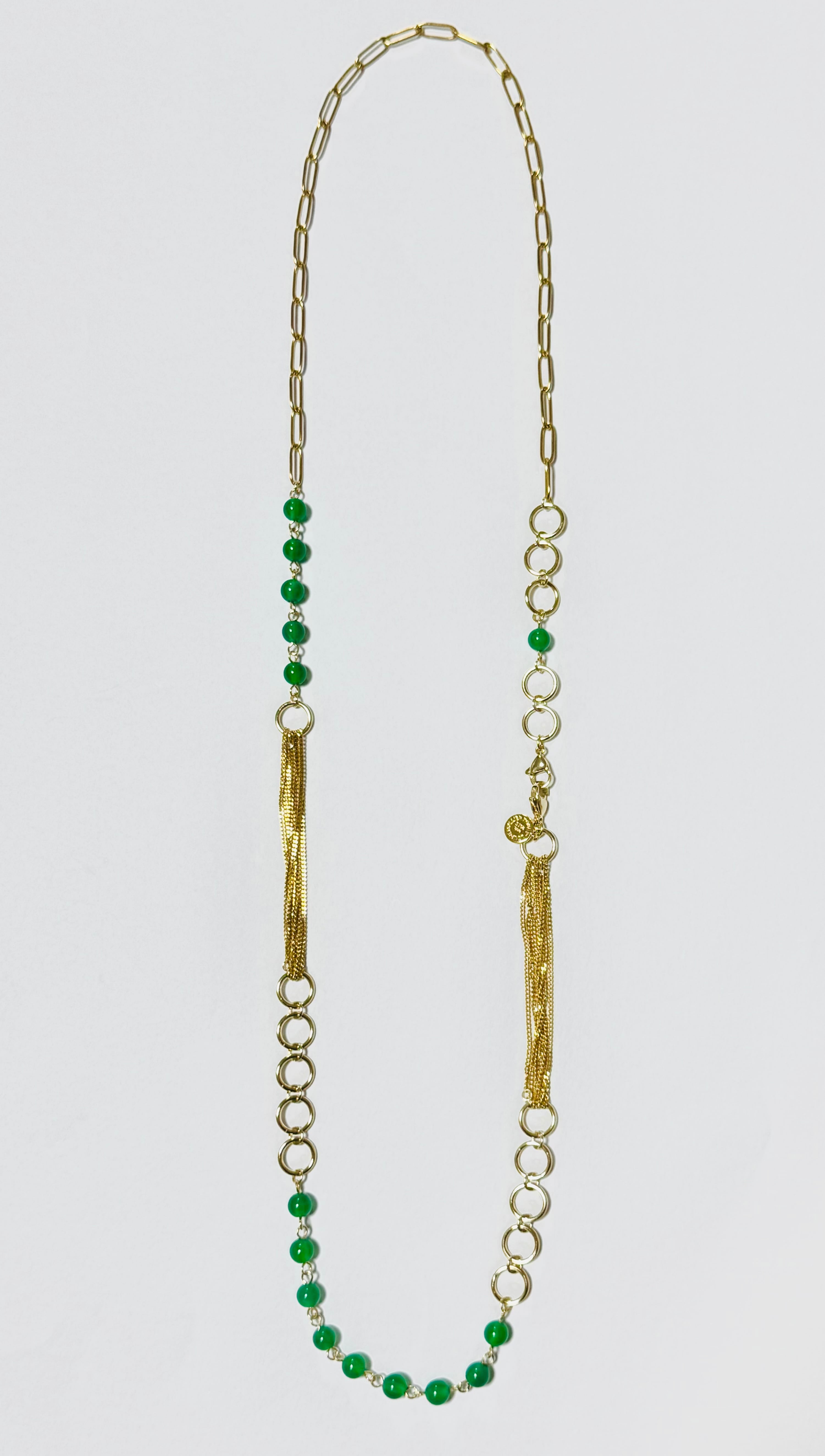 •ネックレス:グリーンオニキス6mm、ステンレスチェーン(18KP)、真鍮パーツ(GP)
