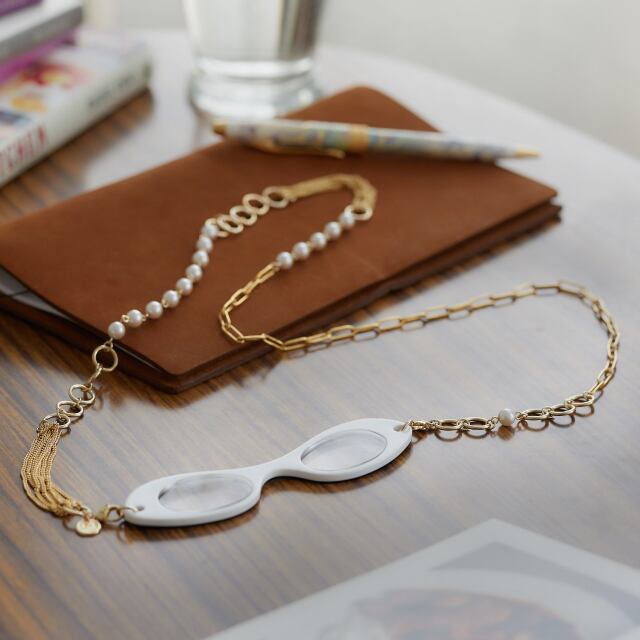 「LOUPE COLLIER/ルーペコリエ」は、女性の声を元に『感性工学』『人間工学』『宝飾生理学』の観点から、2015年神戸で設立された取り外し可能なルーペとオシャレなロングネックレスが一体化した新感覚のアイウェアネックレス(ルーペ一体型ネックレス)ブランドです。